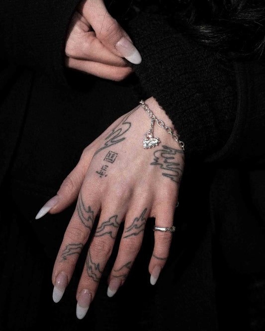 In The Mood For Love is our limited Valentine’s collection, inspired by the film directed by Wong Kar-Wai. Inside metal tins, we’ve enclosed sterling silver heart-shaped charms on bracelets, each with a signature raw texture. Every piece features one of 11 unique tourmalines — each stone comes in a different color, and which one you receive is a matter of fate. Each stone is paired with a film and a Valentine’s letter — an invitation to spend a moment with someone close to you, or with yourself. <3